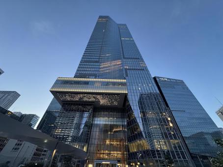 オフィス、ホテル、商業施設が一体になった近未来型の街区で、